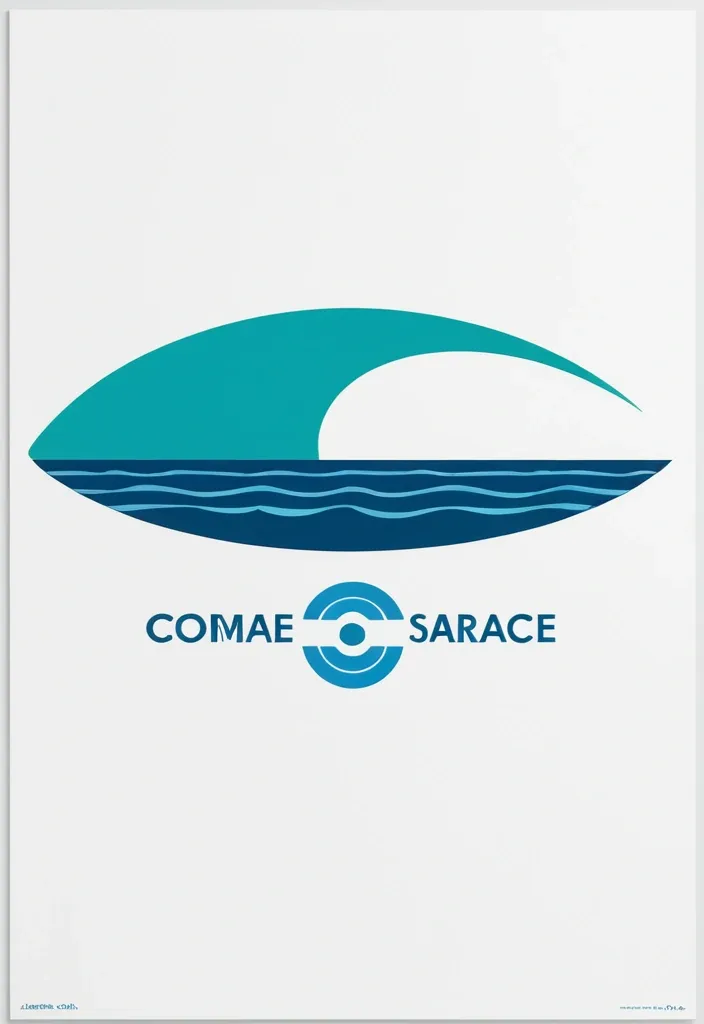 Минималистичный симметричный постер с белым фоном. В центре — большая голубая волна , создающая симметрию. На одной стороне волны — синяя доска для серфинга , расположенная на волне. На другой стороне — зеленая доска , расположенная симметрично. В верхней части — крупный шрифт с текстом 'На одной волне ,
