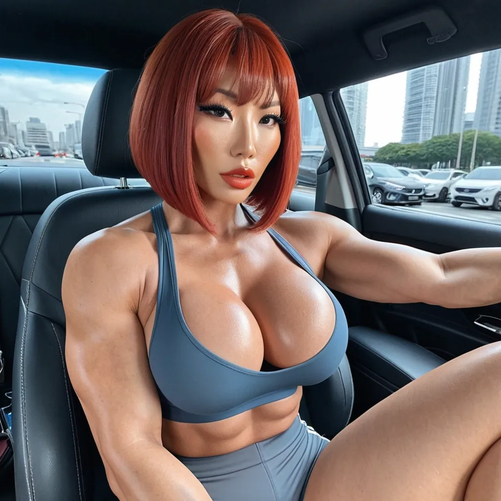 Generate Gorgeous female boss , bimbo , 42 years old , African-American woman , , , hourglass body , abnormally massive female bodybuilder , gorgeous , close up , full lips , big booty , buzz cut , black hair , hair bun , feminine silhouette , too big breast , big booty , sexy thighs abs , silhouette , up close , flexing biceps , gorgeous brown eyes , legs are iconic and defining physical feature , both visually and in terms of combat ability.wearing an outfit that is a striking blend of elegance , power , and femininity , designed to command attention in any room. The suit is tailored to perfection , hugging the wearer’s curves with precision while emphasizing a structured silhouette. The fabric itself is a refined grey tweed patterned with subtle white grid lines , giving the suit a texture that feels both sophisticated and modern. The blazer features broad blue lapels and gold button accents , adding a luxurious touch that elevates the look beyond typical business attire. The matching high-waisted trousers elongate the frame , further enhancing the poised and commanding effect of the ensemble.The styling choices amplify the boldness of the suit. The inner blouse is a silky , greybutton-down shirt that complements the tweed’s tone while introducing a softer , feminine balance to the sharp tailoring of the jacket. The blouse peeks out neatly from under the blazer , maintaining elegance without drawing focus away from the suit’s commanding cut. Accessories are kept minimal yet intentional: a delicate layered gold necklace and hoop earrings that add glimmers of light and luxury without overpowering the outfit. The choice of voluminous , honey-brown braids cascading down her shoulders frames the face with both confidence and glamour , completing the commanding visual.Altogether , this look communicates a blend of authority and allure. It is business-ready yet fashion-forward , balancing corporate structure with vibrant femininity. The color palette blue , grey and gold avoids being overly delicate , instead embracing the richness of texture , structure , and presence. This is the kind of ensemble that speaks to ambition , sophistication , and personal style—ideal for someone who thrives in positions of influence but insists on expressing her individuality with bold elegance. It’s not just clothing—it’s a statement of power wrapped in grace. In luxury living legs that could crush a watermelon , skirt high boots are a bold and striking statement piece , crafted in glossy black patent leather that gives them a sleek , polished finish. Rising to just below the knee , the boots feature three adjustable buckle straps along the shaft , adding both edge and detail to their design. The towering stiletto heel , paired with a thick platform sole , creates an ultra-dramatic silhouette that elongates the leg and exudes power and confidence. With their combination of shine , height , and structure , these boots perfectly balance fierce femininity with high-fashion allure. High cheekbones , prominent jawline , gorgeous big brown eyes , , enormous breast , wearing brown collard shirt , brown fit-it cap , brown shorts , walking on drive way carring bending over working on plants in yard , profile shot ,
