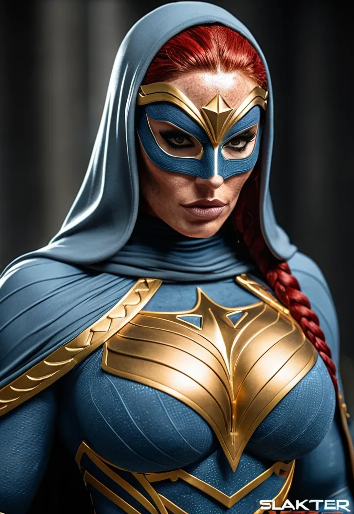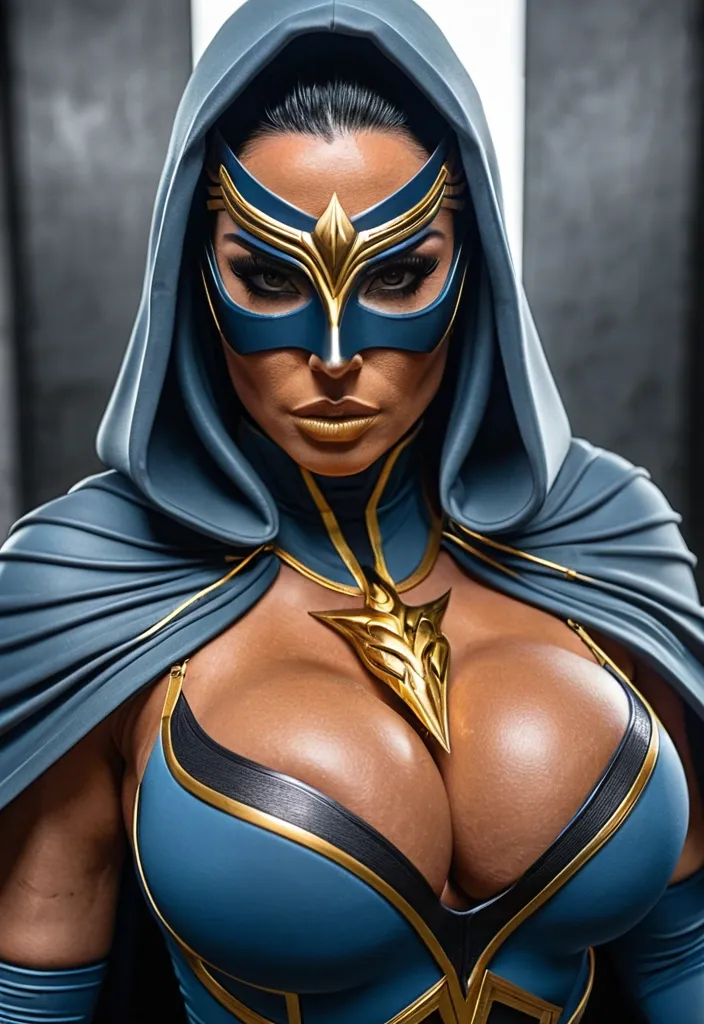 Generate Gorgeous female boss , bimbo , Japanese woman , hourglass body , abnormally massive female bodybuilder , gorgeous , close up , full lips , big booty , black hair , pompadour short bob-cut , , feminine silhouette , too big breast , big booty , sexy thighs abs , silhouette , up close , flexing biceps , beautiful brown eyes , legs are iconic and defining physical feature , both visually and in terms of combat ability.wearing an outfit that is a striking blend of elegance , power , and femininity , designed to command attention in any room. The suit is tailored to perfection , hugging the wearer’s curves with precision while emphasizing a structured silhouette. The fabric itself is a refined grey tweed patterned with subtle white grid lines , giving the suit a texture that feels both sophisticated and modern. The blazer features broad blue lapels and gold button accents , adding a luxurious touch that elevates the look beyond typical business attire. The matching high-waisted trousers elongate the frame , further enhancing the poised and commanding effect of the ensemble.The styling choices amplify the boldness of the suit. The inner blouse is a silky , greybutton-down shirt that complements the tweed’s tone while introducing a softer , feminine balance to the sharp tailoring of the jacket. The blouse peeks out neatly from under the blazer , maintaining elegance without drawing focus away from the suit’s commanding cut. Accessories are kept minimal yet intentional: a delicate layered gold necklace and hoop earrings that add glimmers of light and luxury without overpowering the outfit. The choice of voluminous , honey-brown braids cascading down her shoulders frames the face with both confidence and glamour , completing the commanding visual.Altogether , this look communicates a blend of authority and allure. It is business-ready yet fashion-forward , balancing corporate structure with vibrant femininity. The color palette blue , grey and gold avoids being overly delicate , instead embracing the richness of texture , structure , and presence. This is the kind of ensemble that speaks to ambition , sophistication , and personal style—ideal for someone who thrives in positions of influence but insists on expressing her individuality with bold elegance. It’s not just clothing—it’s a statement of power wrapped in grace. In luxury living legs that could crush a watermelon , skirt high boots are a bold and striking statement piece , crafted in glossy black patent leather that gives them a sleek , polished finish. Rising to just below the knee , the boots feature three adjustable buckle straps along the shaft , adding both edge and detail to their design. The towering stiletto heel , paired with a thick platform sole , creates an ultra-dramatic silhouette that elongates the leg and exudes power and confidence. With their combination of shine , height , and structure , these boots perfectly balance fierce femininity with high-fashion allure. Massive breast , massive cleavage , Up close shotThis powerhouse hourglass silhouetted female superhero wears a sleek , form-fitting brown-beige bodysuit with intricate dark bronze accents that highlight her powerful physique , complemented by a dramatic intense stare that adds mystery and flowing movement. A distinctive f her face while leaving her determined expression visible , and the prominent dark bronze hourglass emblem on her chest symbolizes vigilance , freedom , and unyielding strength. Massive cleavage , up close shot ,