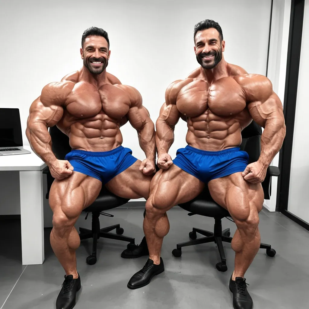 A gigantic , extremely broad shouldered , absurdly muscular , overgrown , blond , male bodybuilder with an impossibly muscular , hulking , wide-framed physique , with hugely inflated musculature; extremely exaggerated muscles. He’s wearing shiny blue speedos and a basball cap. His body is very vascular. His pectorals and thighs are massively thick and muscular , massively overgrown , He has a narrow , very muscular abdomen. He has a beard and looks friendly ,