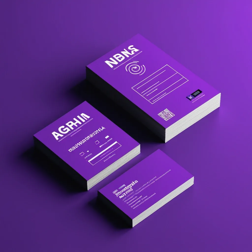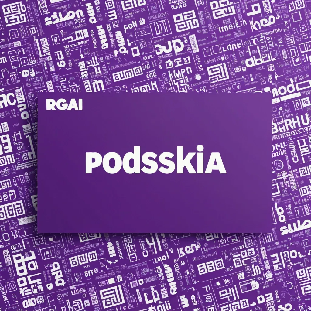 create business card for it project that is website about news and social media trends. the concept of the project is that it's collects numerous social media publications and detects trends. the style must include purple (like electric purple or neon purple color). one side of card must be purple and the other white. on the purple side there must be word cloud with media trends (labubu , tiktok , ikea , k-pop etc). on the other side there must be name of project ("PODSLUSHKA") , it's URL and QR code ,