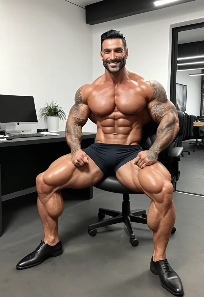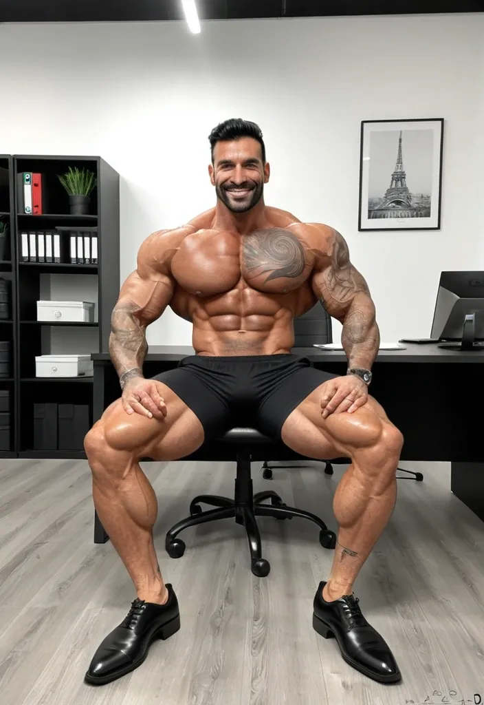 À giant muscular chubby most busty femalebodybuilder , housewife woman BBW musclée , heavy weight bodybuildeuse géante et plantureuse with giant chest , imposante dame massive , beautiful make up Megan thee stallion face , in a police station office , avec de gros seins , énormes biceps musclés , in black laces transparent very short mini loose nightgown with heels , exposant les seins , bras musclés exposés , dominante , jambes massives exposées , agressive , ,