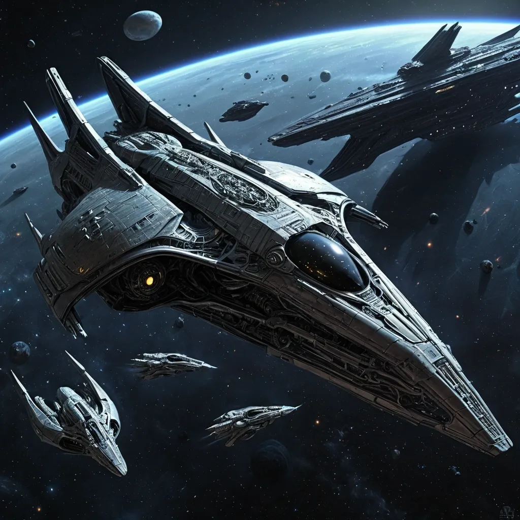 A colossal Predator , crafted from polished chrome and brass , perches atop a crumbling retro-futuristic cityscape under a nebula-filled sky. Intricate gears and glowing vacuum tubes are visible within its metallic feathers. The scene is rendered in a hyperrealistic style with dramatic , cinematic lighting , reminiscent of Syd Mead's vision and the detailed fantasy concept art of artists like Brom. ,