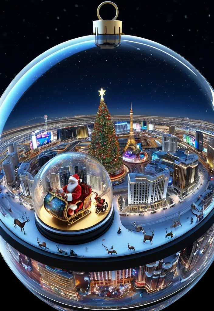 A breathtaking 8K hyperrealistic , cinematic photograph , ultra-detailed , showcasing a powerful and beautiful angelic figure. She possesses a voluptuous , strong feminine form , with majestic , luminous white feathered wings and a gentle expression framed by striking blue eyes. She is gracefully levitating in mid-air , subtly suspended as if on an invisible ethereal current , her arms elegantly posed , holding a beautifully wrapped Christmas gift box adorned with a golden ribbon. Her long , dark , slightly glowing hair flows freely , moved by an unseen magical breeze. She wears an elegant , flowing , ethereal white lace gown with intricate floral embroidery , crafted from mystical , subtly sheer fabrics that exquisitely accentuate her refined silhouette. Behind her , an expansive , enchanted snowy night fantasy world unfolds under a vast , starry night sky , filled with gently falling snowflakes. Below , a sprawling , illuminated fantasy cityscape glimmers with warm glowing windows , and a massive , intricately decorated Christmas tree stands majestically in the distance. The breathtaking landscape also reveals subtle elements of mystical floating islands , distant , snow-capped mountains , and ancient , magic-infused ruins , all inspired by the most prestigious designer of nature , goddess Aphrodite. Magical energy subtly radiates around her body. The atmosphere is profoundly ethereal , festive , and mystical , bathed in soft , glowing cinematic light that emphasizes her divine , powerful presence. Intricate linework and luminous textures blend seamlessly to create a harmonious composition of unparalleled delicacy and grandeur. The overall style is an exquisite blend of high fantasy majesty with absolute photorealism , achieving an almost sacred , dreamlike quality. ,