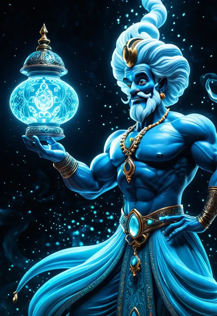 A flowing , tiny Genie-like (a fictional character who appeared in Walt Disney Pictures' animated film Aladdin) , holding a iPhone taking selfie , emerging from a ornate , antique lamp. The Genie is composed entirely of soft , bioluminescent at the head and shoulders , shifting into bright cyan. Style: Celestial , ethereal , abstract , digital art smoking: Dramatic backlighting , bright glowing particles , contrasting dark background Composition: dynamic diagonal composition , upward gaze Details: Sparkling white waves and smoke , streaking white light trails , sense of movement and wonder , magical atmosphere Quality: High detail , 4K , Masterpiece , Rendered in Octane ,